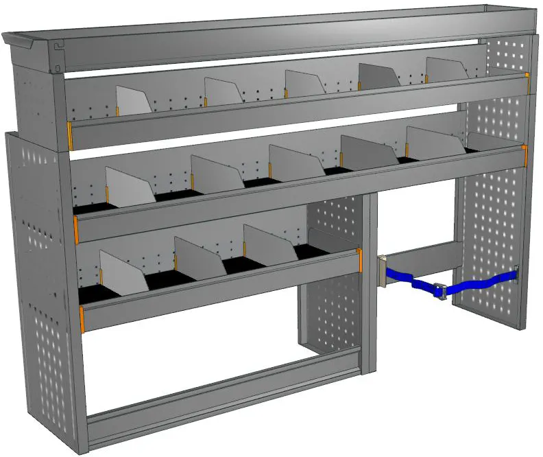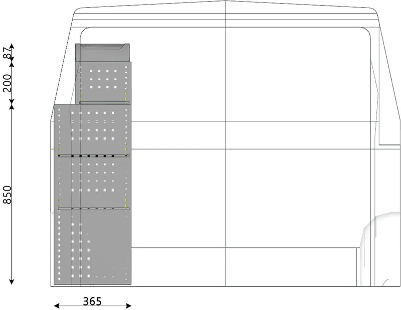Diese Regal ist perfekt als Transporterausbau für Mercedes Benz Vito – Modelljahr ab 2015 – Kompakt L1 – Linke Seite. So wird der vorhandene Laderaum optimal genutzt, ohne wertvollen Platz zu verschwenden. Durch die durchdachte Anordnung der Systemkomponenten haben Werkzeuge, Material und Kleinteile ihren festen Platz – übersichtlich, griffbereit und sicher verstaut.