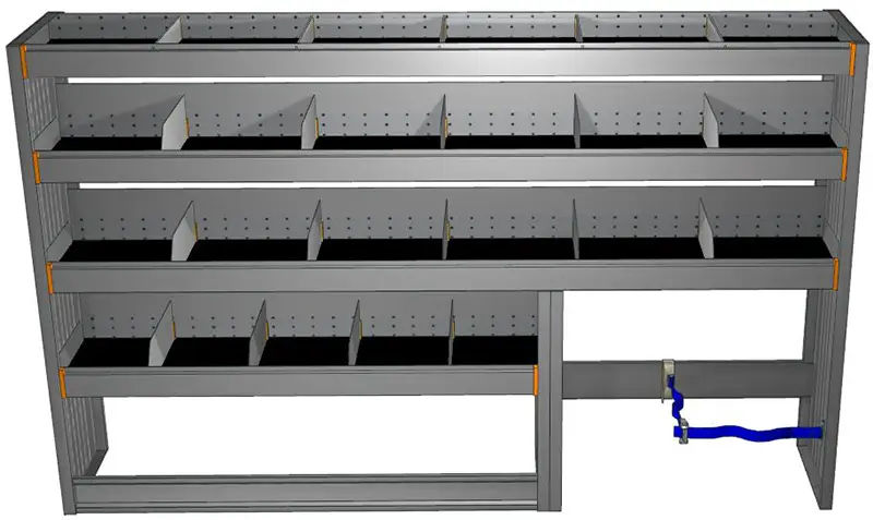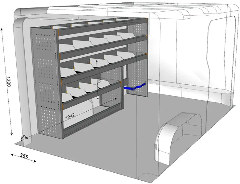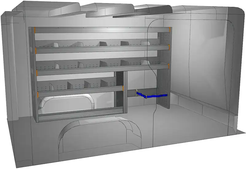 Als Perfektionist wissen Sie: Ordnung ist das Fundament für effiziente Arbeit. Diese Fahrzeugeinrichtung verwandelt Ihren Renault Trafic L1 (ab Modelljahr 2014) in eine perfekt organisierte mobile Werkstatt. Unser Fahrzeugregal Modul V002 für die linke Seite bietet Ihnen nicht nur maximale Übersicht, sondern spart durch den schnellen Zugriff auch wertvolle Arbeitszeit. Setzen Sie auf eine robuste und hochwertige Lösung, die Ihren professionellen Anspruch unterstreicht.